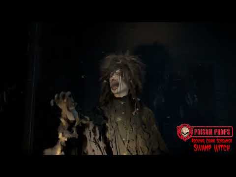 Voodoo witch rocks creepily in a chair whispering then flies out 7’ screaming!