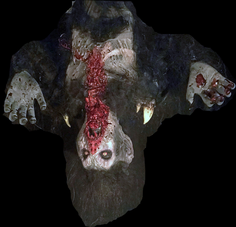 Vampire drops down from above at a 45 degree angle while arms open up and head thrashes face to face with your patrons.