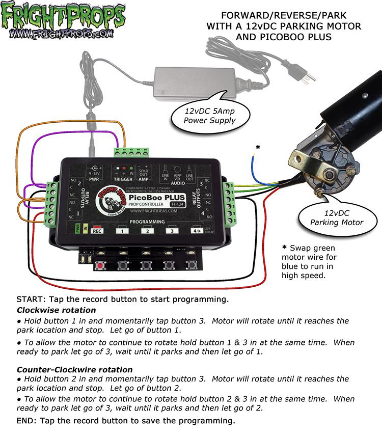 USING TWO PICOBOO OUTPUTs TO RUN THE MOTOR IN ONE DIRECTION AND PARK