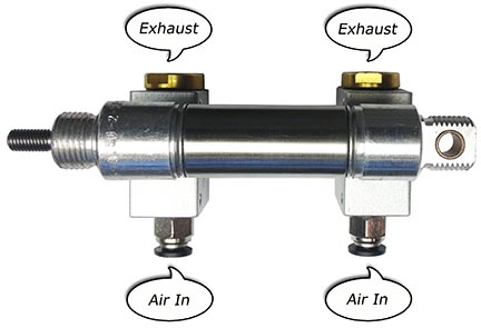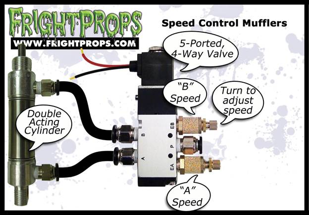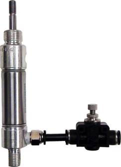 There are several methods to control the extending and retracting speed pneumatic cylinders. We offer Flow Controls, Speed Control mufflers, and Quick Exhaust Valves to accomplish speed control. Double-acting cylinders can have both the out and in stroke controlled and you can mix the different control methods on each port. In reality it is difficult to regulate speed of air cylinder because of the compressible nature of air. So exact speeds are not obtainable but you can get sufficient control for prop requirements.