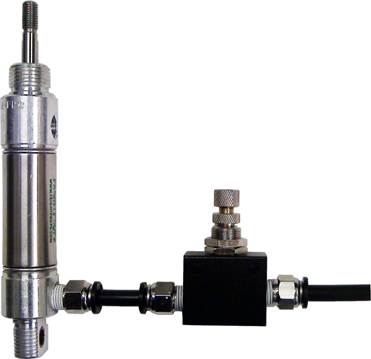 Screw to your cylinder where the air enters (top, bottom, or both). Simply turn the needle valve to adjust air speed, screw the smaller jam nut to lock in place