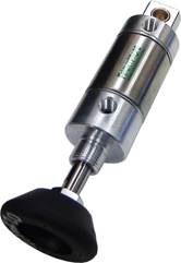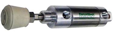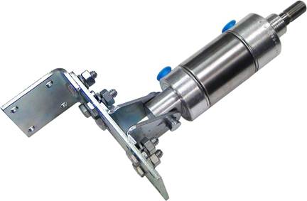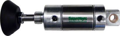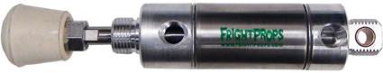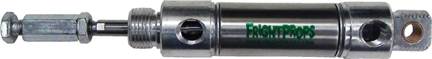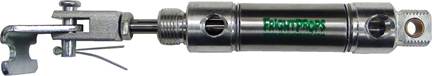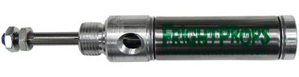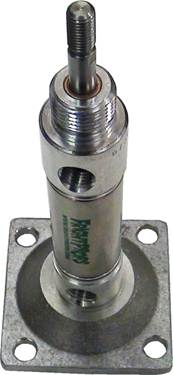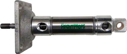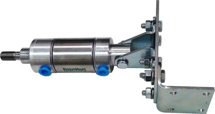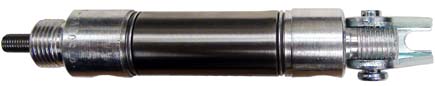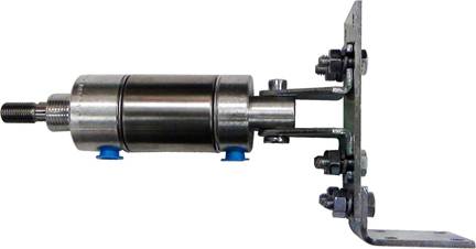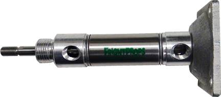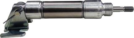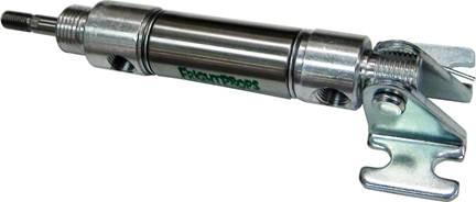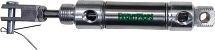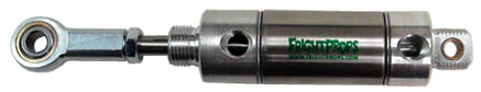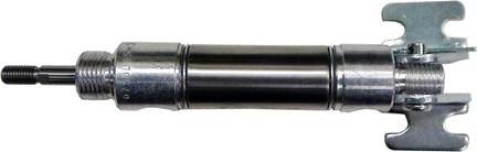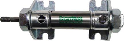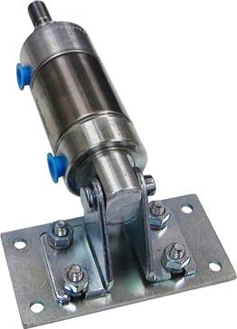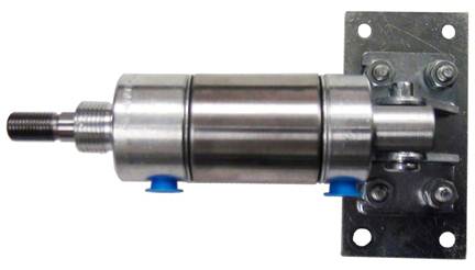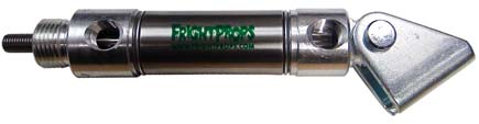 We offer several different mounting options for our pneumatic cylinders. In the picture a “nose mount” cylinder is shown on the top and a “universal mount” is shown on the bottom. A nose mount cylinder can only be mounted from the threads on top, a universal mount can be mounted from the top and bottom and can be pivoted from the rear.