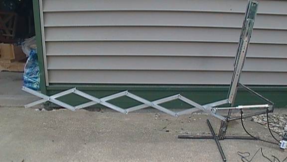 Now you need to figure out how far from the mast you need to mount your scissor mechanism. Make sure that whatever holes you drill to mount the scissor mechanism on are far from the mast enough that the scissor’s corners do not strike the mast. The corners will extend farthest when the mechanism’s arms are at a 45degree angle.