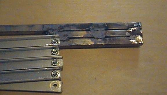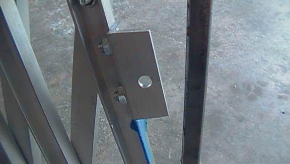 You will be unable to weld the slider to the “inner” side of the mast, due to the narrow space between the two sliders. Compensate for this by taking a small piece of 1/2inch steel tube or a flat strip of steel (as shown in this example) and welding the two sliders to each other. Their stability will be greatly increased by bracing them against each other.