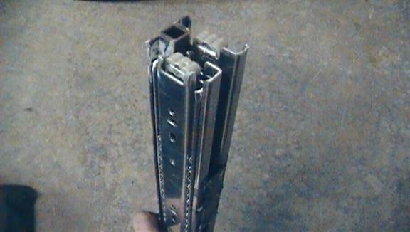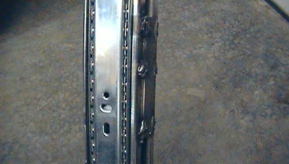 Now weld on the second drawer slider to the other side of the mast, mirror image it to the first. This second slider will add additional strength and stability to the mechanism.