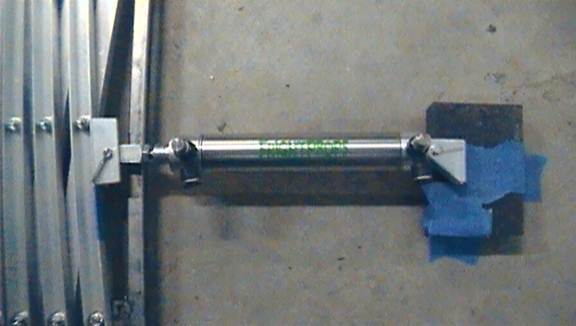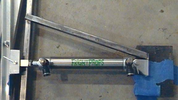 Position your pneumatic cylinder (prop up its end so that it’s level) so that it is approximately perpendicular to the mast and about one inch bellow the mechanism’s center joints.