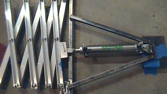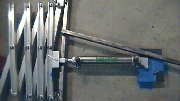 A massive amount of guess and check is required of this next step. Here is where you figure out exactly where to install your pneumatic cylinder in reference to the scissor mechanism.
