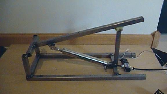 Before committing to any permanent welds, when you think you have the right positions, tack weld them in place. Double and triple check that when the pneumatic is retracted, the arm rests without swinging downwards and that when the pneumatic is extended, the arm points directly upwards (see the second picture of this instructional).
