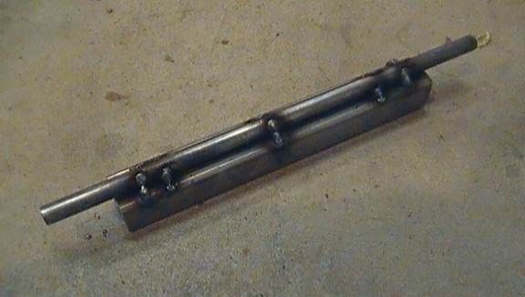 You’ll probably have a little 3/4inch metal tubing left over. You can use this to make a brace for the arm when the pneumatic is retracted. This is to absorb the impact of the pneumatic retracting: taking stress off of the pneumatic itself and making absolutely sure that the arm doesn’t swing down too far and lock up, in case you welded the clevis bracket too close to the arm pivot. Just cut the metal to approximately the vertical distance between the pivot bracket tube and the arm. Weld it in place and add something soft and squishy (such as foam or a rag) to the top of it to absorb the impact and prevent the loud CLANG that comes with two pieces of metal knocking together.