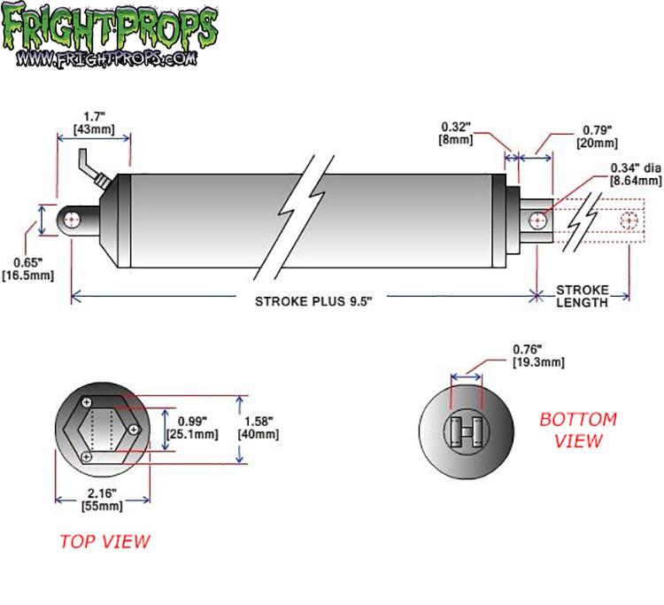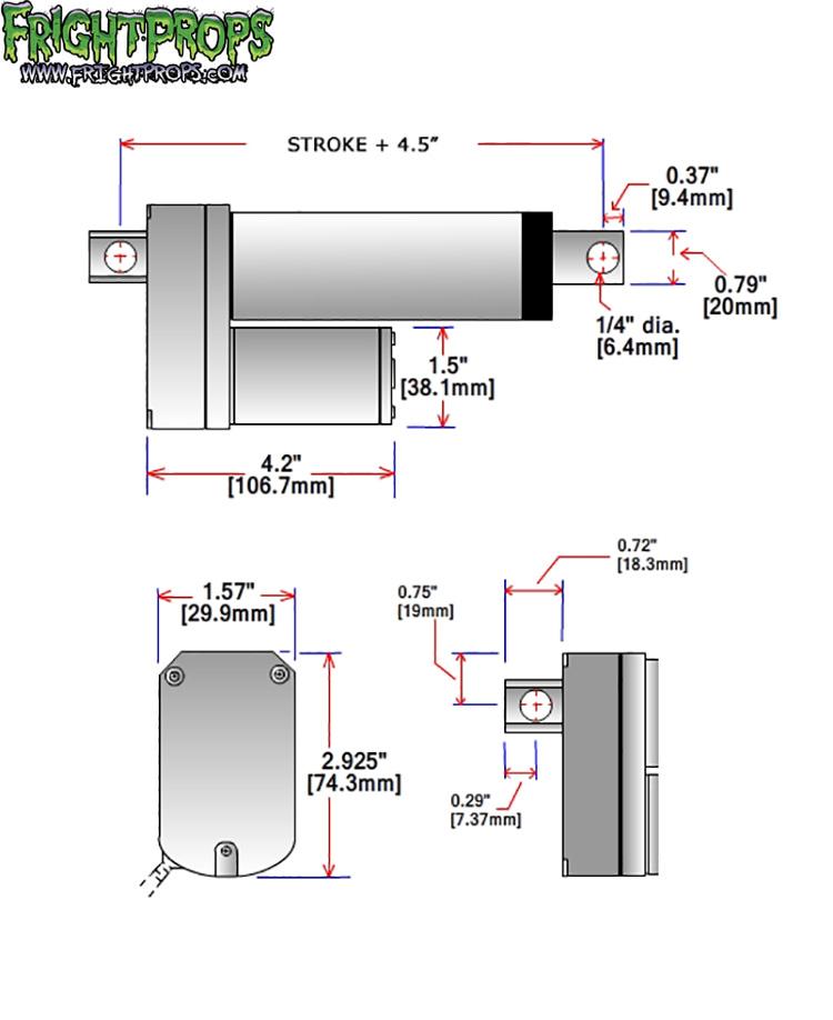FRIGHTPROPS STANDARD-SPEED LINEAR ACTUATOR DIMENSIONS