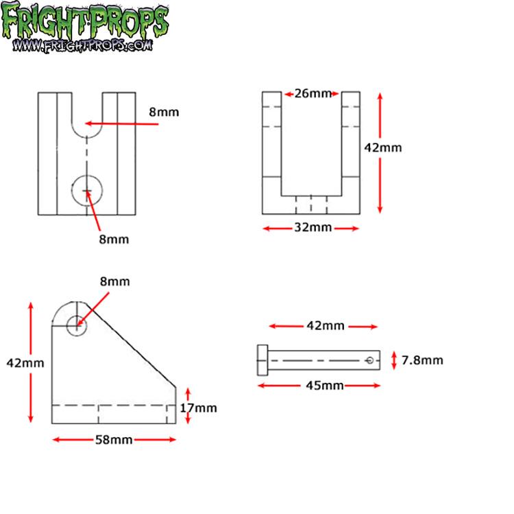 FRIGHTPROPS LINEAR ACTUATOR MOUNTING BRACKET DIMENSIONS
