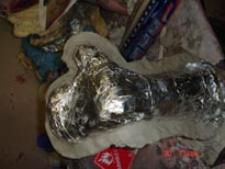 We will now prep for and apply the mother mold. Press tin foil onto surface of the object. Make sure all areas are covered tightly and make sure area around the object is covered. |