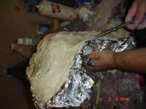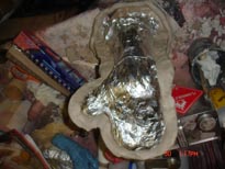 Press tin foil onto surface of the object that does not yet have Plasti-Paste applied. This will make sure the two halves of the mother mold do not bind together. |