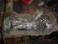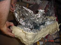 ![]() Mix up another batch of Plasti-Paste using Parts A and B and apply to the tin foil on the side not previously coated. |