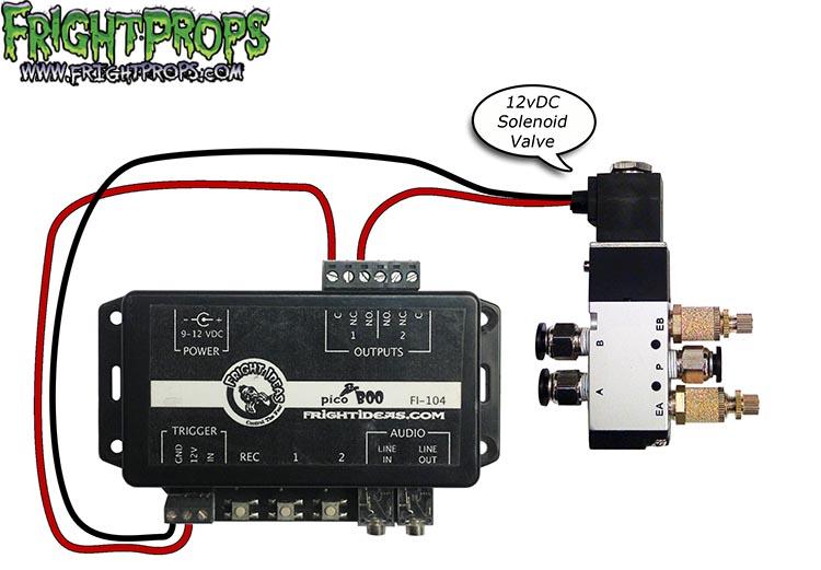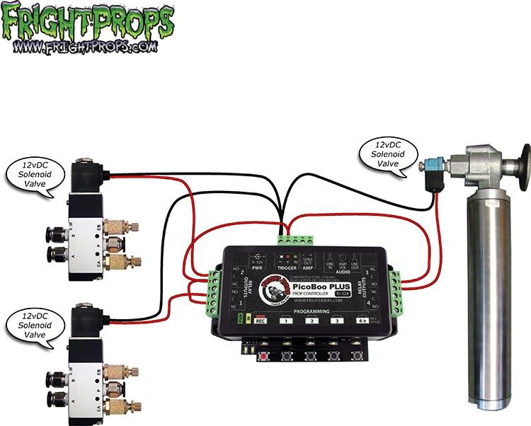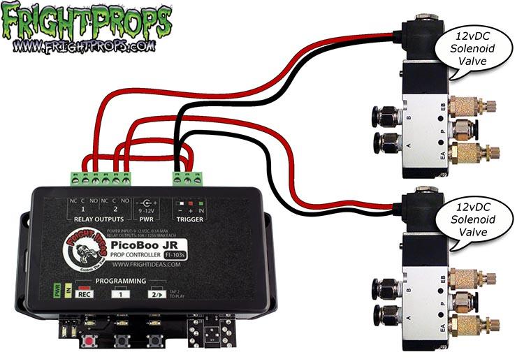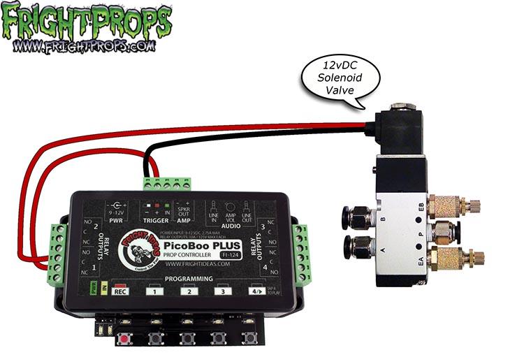 PicoBoo PLUS with four 12V solenoids and a 12V relay sharing an output TO POWER A 110V DEVICE