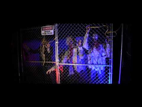 Two Ghouls stand holding onto fence, then fence shakes, arm reaches through crack in fence grabbing at patrons!