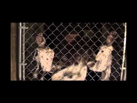 Psycho stands holding fence gate, Then she shakes violently left to right while fence gate is banging open and close.