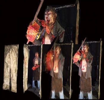 Plug & Play! All of our pneumatic (air powered) props come complete and ready to run with programmed controller, motion sensor, intense audio, and speakers. Foot print for rig including body is 84" d x 22" w x 90" h.