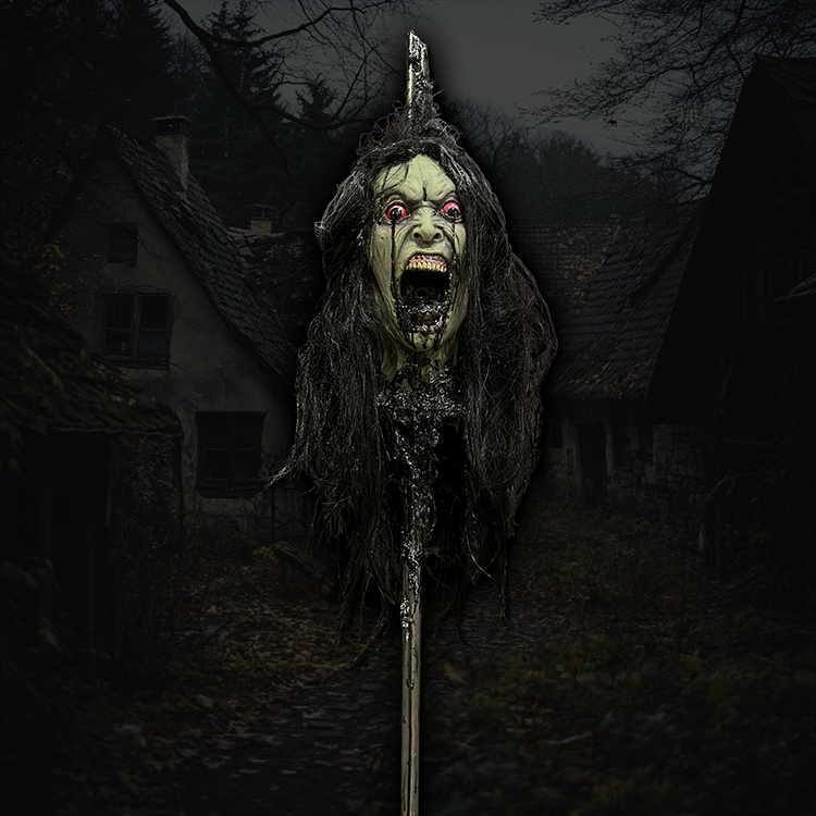 Skewered banshee head screams and blasts air from the mouth!