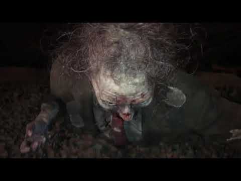 Unearthed Zombie is slumped over, then rises up and reaches out and grabs at your ankles as head turns side to side.