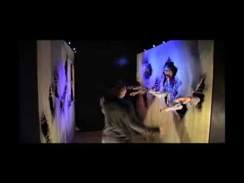 Rotted detailed hallway 8' long x 90" tall. When triggered ghouls arms and heads come out of holes attacking from both sides of hallway.