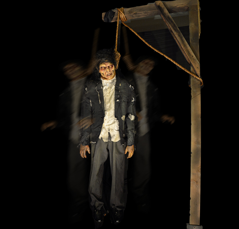 Plug & Play! All of our pneumatic (air powered) props come complete and ready to run with programmed controller, motion sensor, intense audio, and speakers. Optional metal base and gallows.