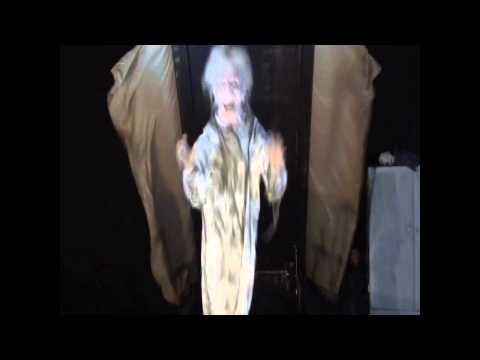 Granny waits under bed then bed lifts up. Granny shoots up and out 7' while head turns left to right.