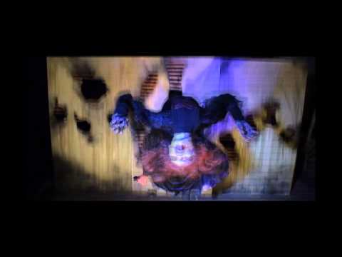 Plug & Play! All of our pneumatic (air powered) props come complete and ready to run with programmed controller, motion sensor, intense audio, and speakers. Foot print for rig is 42”d x 29" w x 90” h (Character is 90" h). Set up works with your wall panel with a cut out in it for the scissor to fit through. Scissor Rig hides behind wall. 48" x 90"