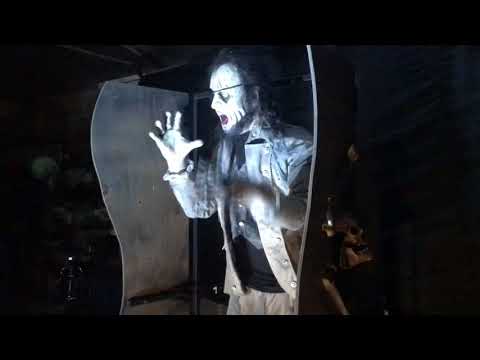 Pirate waits behind wall, then wall splits open and Pirate burst up and out to 7′ tall while arms flail and grab. A great startle scare.