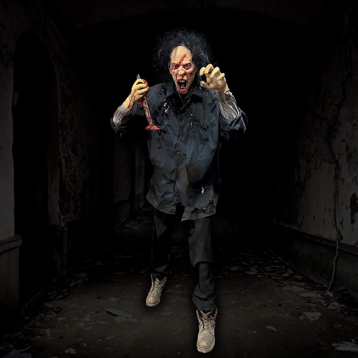 This non-animated photo op comes with two blood thirsty zombie. Great for promoting your haunted event or party! Human not included (provide your own...lol!)