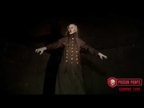 Seated Vampire Lord suddenly shoots up to an incredible 9.5' tall while hissing and waving his arms!