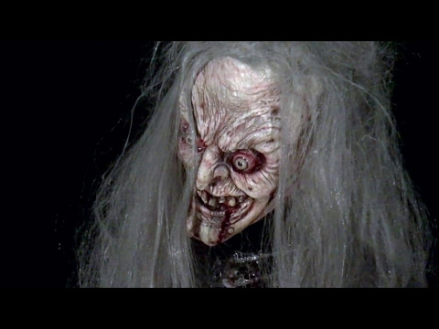 Witch head lifts and goes left to right, arms lift, both elbows bend as she shoots out 8′ while screaming to come face to face with patrons.