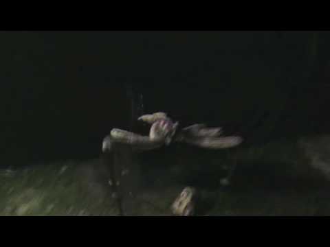 Spider sits on ground with blinking red eyes. When activated lunges up and out 5' violently pulsing back forth.